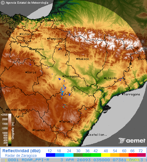 Oihartzunaren intentsitatea (Z dezibeliotan) irudikatzen da. Parametro hau prezipitazioaren intentsitatearekin lotua dago.