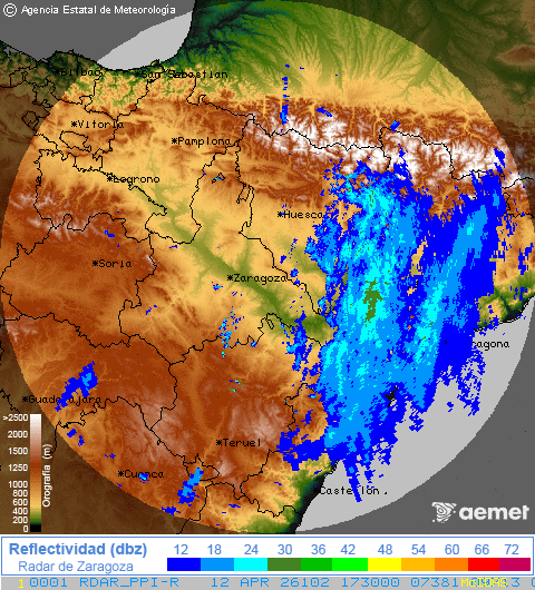 Oihartzunaren intentsitatea (Z dezibeliotan) irudikatzen da. Parametro hau prezipitazioaren intentsitatearekin lotua dago.